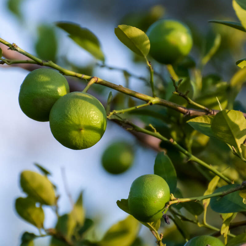 The Key lime tree is a small citrus tree known for its aromatic, acidic fruit widely used in culinary applications.